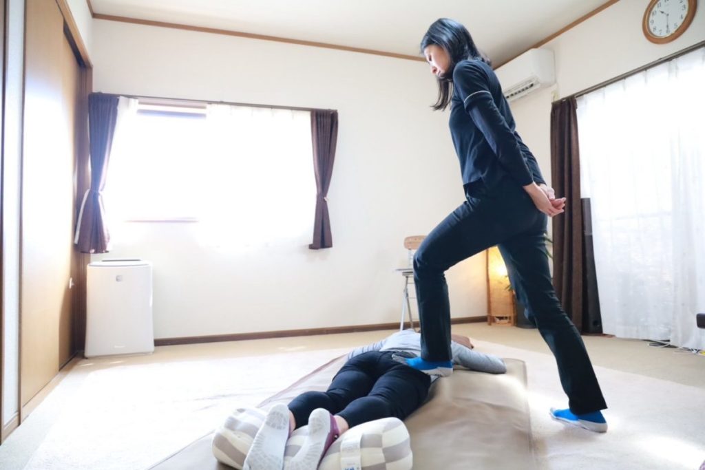 谷川流足圧とは施術者の足だけを使い、足の指先から頭まで全身を施術していく健康法です。足のデメリットとなる『痛い』や『重苦しい』などを一切感じさせず、足のメリットだけを活かした、オリジナルの技法です。
